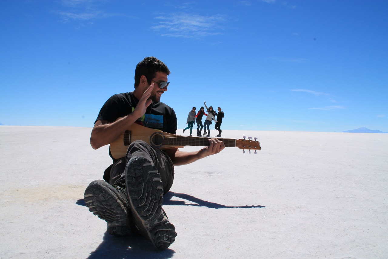 Nos montamos en los jeeps, a nosotros nos acompañaban una pareja de holandeses, una mexicana y una ecuatoriana, todos ellos muy simpáticos. El primer día tocaba ver el Salar de Uyuni, 12000km cuadrados de salar que habían pertenecido hace millones de años al pacífico, impresionante!!allí sacamos unas fotos muy divertidas, el resto las teneis en la fotogalería. Dormimos en un hotel de sal esa noche, que a Nahúm le sentó fatal y se puso malísimo.